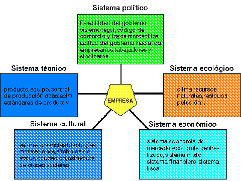Hasta aquí hemos definido la empresa como la unidad donde se efectúan los procesos de producción, hemos introducido los objetivos del empresario y los tipos de empresas existentes.En la figura 2 podemos ver un esquema del entorno de la empresa.