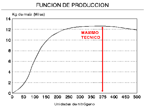 El punto de máxima producción se llama máximo técnico. Gráficamente puede verse como el punto donde la curva empieza a descender: