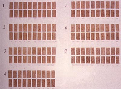 La automatización en el escogido de tapones animó a la presentación de propuestas de patrones para los tapones cilíndricos de una pieza de corcho natural. Algunas establecen la división en siete clases (Ver figura 4.13), sin que se hayan alcanzado acuerdos.